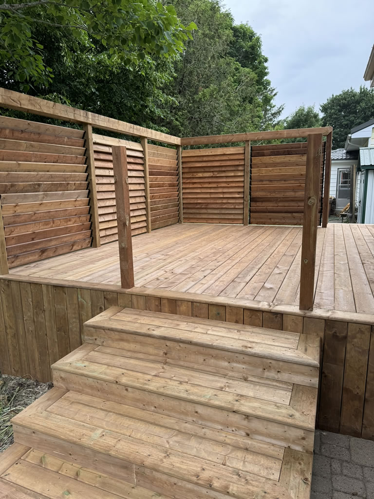 Offering fence, deck, retaining wall, and interlocking stone services to Walkerton, Hanover, Chesley, Mildmay, Neustadt, Elmwood, Paisley, Kincardine, Tiverton, Port Elgin, Southampton, Teeswater, Formosa, Clifford, Harriston, Listowel, Palmerston, Mt. Forest, Markdale, Flesherton, Owen Sound, Wingham, Ripley, Point Clark, and Lucknow.